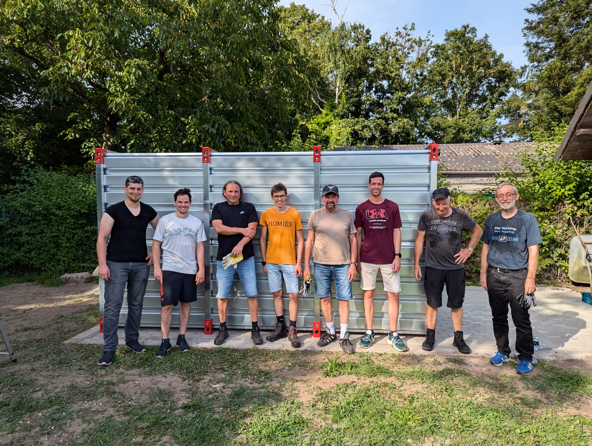 Da der Pächter mehr Platz für benötigt und wir eine saubere Trennung zwischen Pächter und Vereins-Material haben wollten wurde am 31.07.2024 von fleißigen Helfern in einer schweißtreibenden Aktion auf das vorher vorbereitete Fundament neben dem bestehenden Container ein weiterer Container aufgebaut. Passend dazu